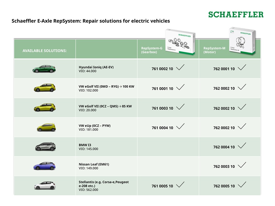 Gdy pojazdy elektryczne, takie jak Opel Mokka lub Peugeot 208e, miały problemy z silnikiem elektrycznym, przekładnią redukcyjną lub komponentami elektroniki mocy, jedyną opcją naprawy była kosztowna wymiana całego napędu. Dzięki oferowanym przez Schaeffler Vehicle Lifetime Solutions rozwiązaniom: Schaeffler E-Axle RepSystem-M, Schaeffler E-Axle RepSystem-G i Schaeffler Vitesco E-Axle PEU KIT dystrybutorzy oraz warsztaty mają teraz dostęp do zestawów naprawczych EMR3, która znajduje zastosowanie w wielu pojazdach Stellantis.